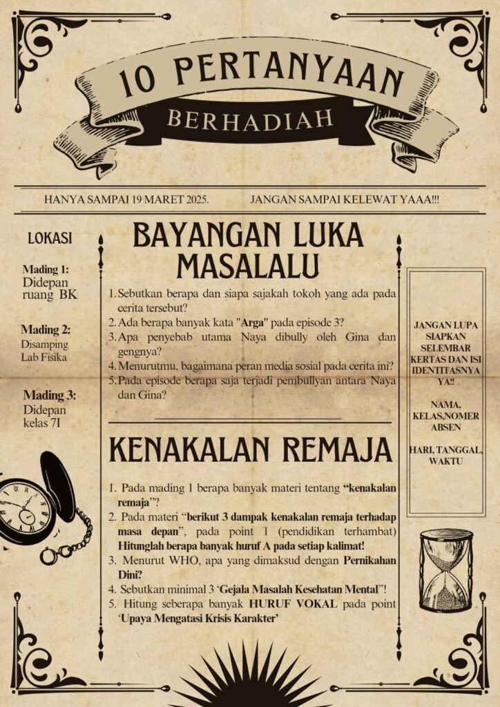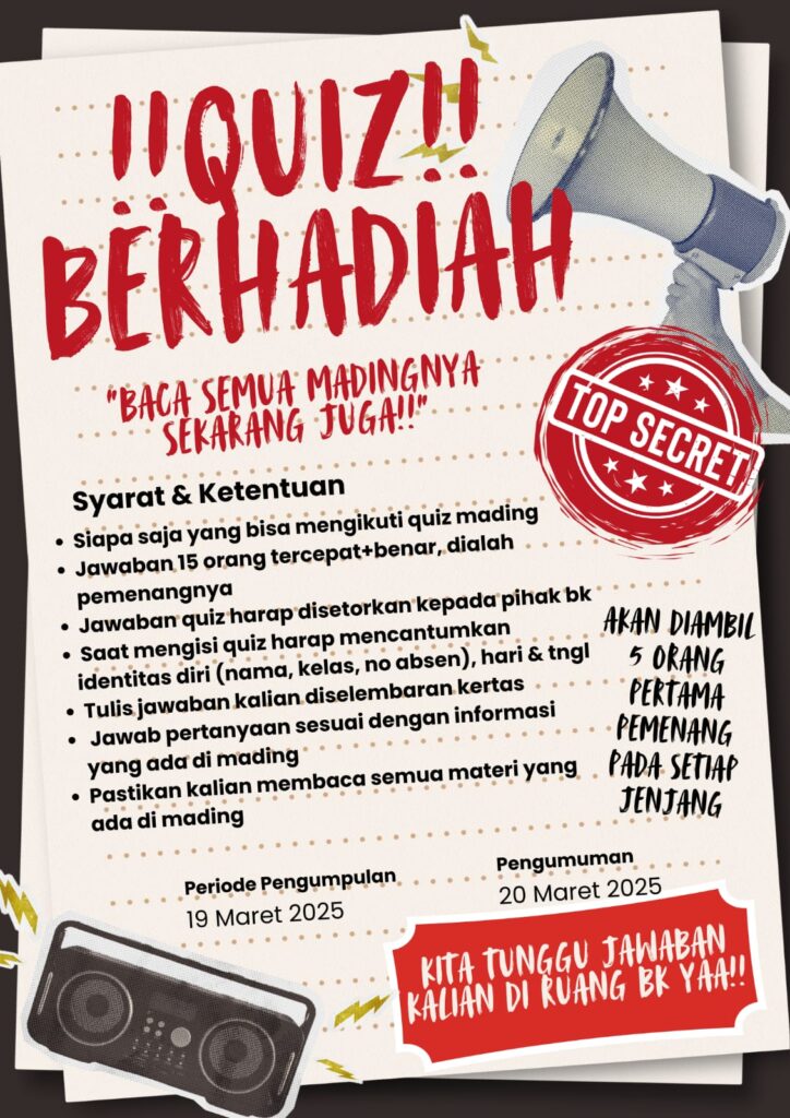Hawwa Salzabilla, Laysachyta Aquila Adis, Rafael Putra Marera, Chesillya Frizka, dan Wahyu Pratama. Program ini dikerjakan selama satu minggu, mulai tanggal 11 Februari hingga 18 Februari 2025 , dan resmi diaktifkan serta dipromosikan pada tanggal 20 Februari 2025. Berikut lokasi dan Isi Mading: