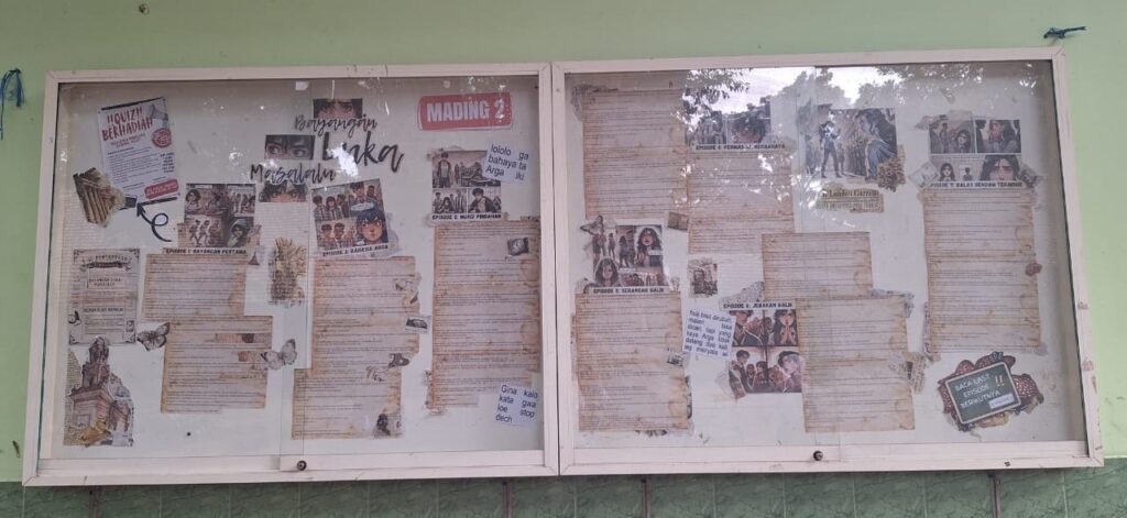 Majalah dinding yang dipasang di area sekolah menyajikan berbagai konten menarik, seperti artikel informatif, tips praktis, cerpen inspiratif, serta pengumuman kegiatan atau diskusi yang dapat diikuti oleh siswa. Dengan demikian, SALTING berperan sebagai media edukasi sekaligus sarana untuk meningkatkan kesadaran siswa terhadap pentingnya kesehatan mental.